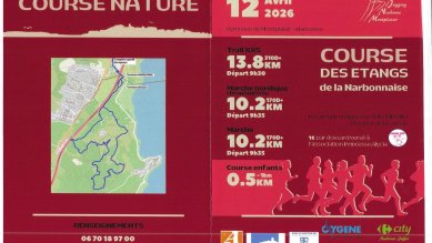 Trail XXS, marche nordique chronométrée et marche sur routes et chemins qui serpentent au-dessus des étangs de la Narbonnaise à travers pinèdes, vignes et garrigue.